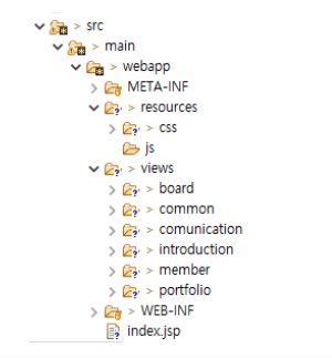 사용자에게 데이터를 시각적으로 보여주기 위한 파일들이 있는 곳 ex. index.jsp / board.jsp