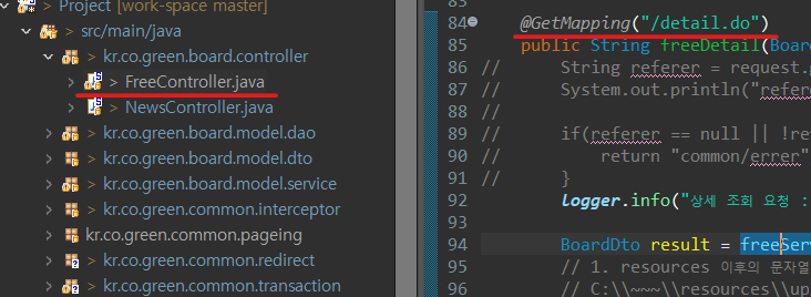 사용자가 요청한 URL을 매핑하여 특정 작업을 진행함