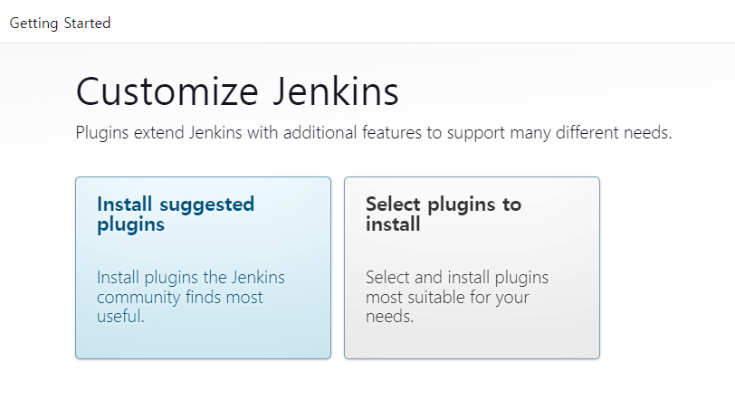 젠킨스 플러그인에 대한 설정 -> 파란창선택(권장 플러그인 설치)