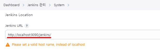 ** 여기서 젠킨스 주소를 localhost:9090 이런식으로 나타내면 에러가 뜬다