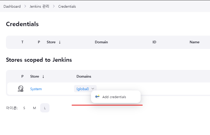 Jenkins에서 사용되는 인증 정보를 안전하게 관리하기 위한 메커니즘이며, Credentials를 통해 사용되는 비밀번호, API토큰, SSH 키 등의 정보를 안전하게 저장하고 관리한다