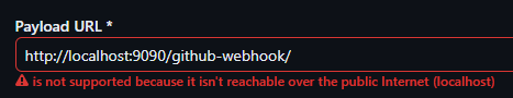 → 로컬에서 실행되는 Jenkins 서버의 localhost는 GitHub이 직접 접근할 수 없기 때문에, GitHub과의 통신을 위해서는 Jenkins 서버가 공용 네트워크에서 접근 가능해야 합니다.