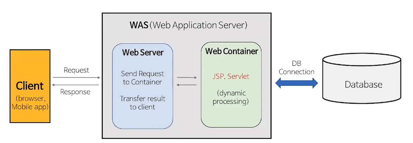 - 클라이언트로부터 HTTP 요청을 받을 수 있다(대부분의 WAS는 Web Server 내장)