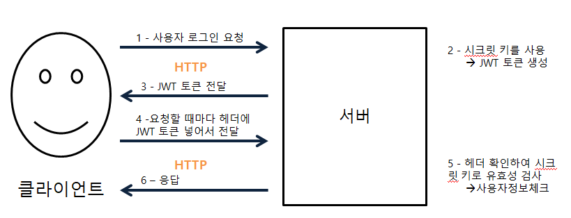 JWT의 인증 과정은 위 이미지를 참고 하면 된다!