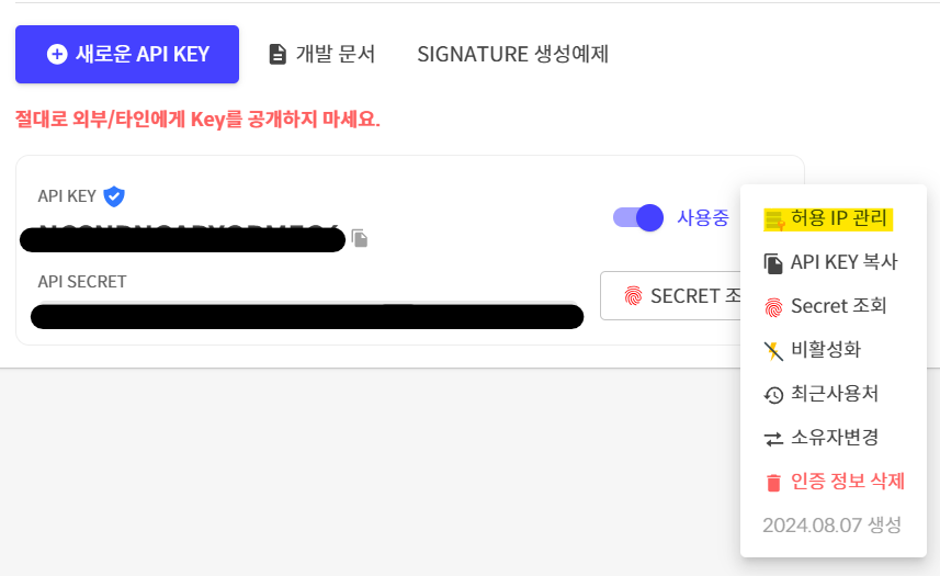 마지막으로 허용 IP 관리에서 설정만 해주면 된다.
