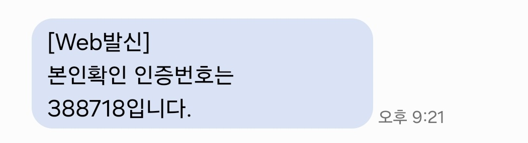 <!--서버에서 발송된 인증번호-->