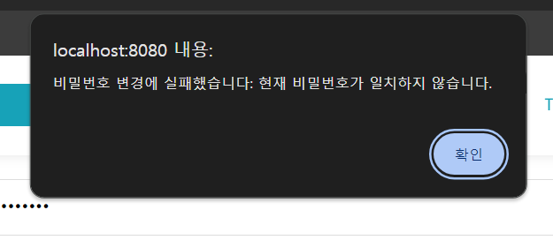아래는 현재 비밀번호가 일치 하지 않을때 반환된 에러 문구