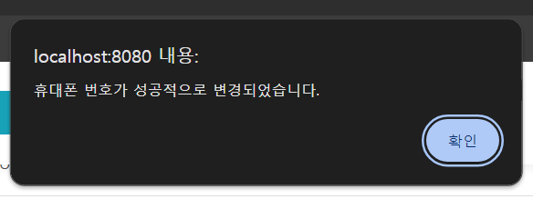 alert('휴대폰 번호가 성공적으로 변경되었습니다.');