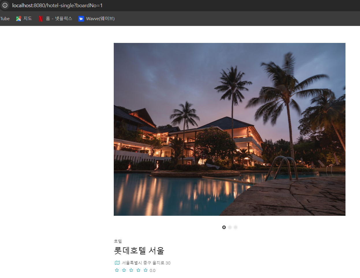 - 상세 페이지로 이동하는 URL은 /hotel-single?boardNo=... 형식으로, 숙소의 고유 번호인 accommodationNo를 쿼리스트링으로 전달하여 예약한 숙소의 상세페이지로 이동